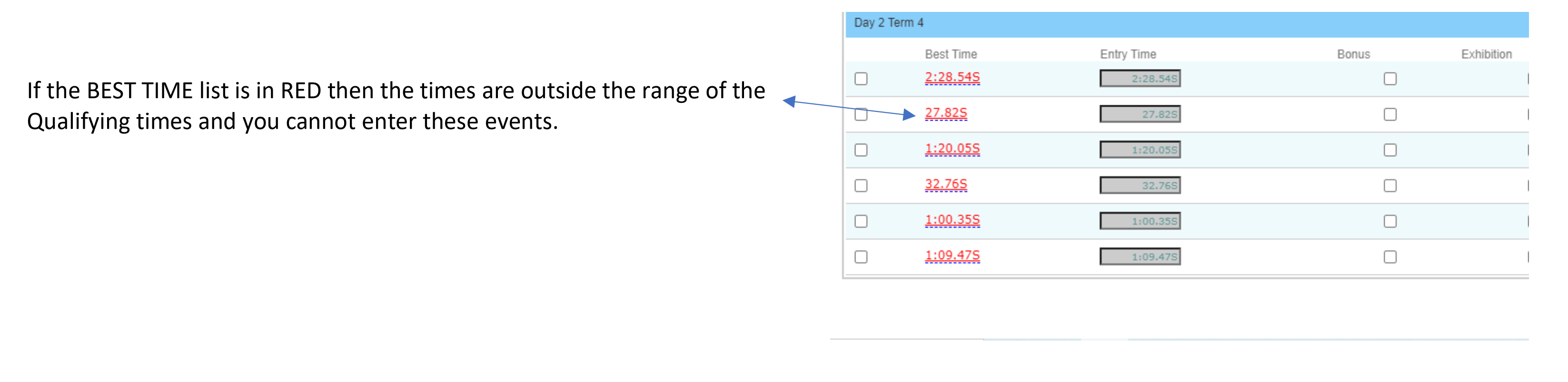 Please note that times have an S for short course time or L for long course time. The file from the meet will search out the swimmers fastest time and convert it to the meet pool length. In this case you might think the times are incorrect but there is a recognised system that converts times between pool lengths. Any queries about times should be directed to Stevie Dixon at [email protected]